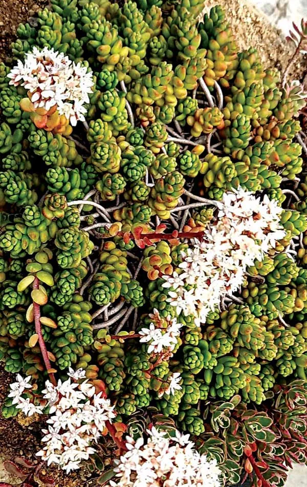• 세덤속: 노란색 별 모양 꽃, 매우 화려함