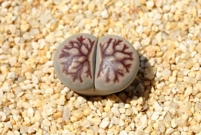리톱스는 그리스어로 '돌(lithos)'과 '얼굴(ops)'이 합쳐진 말이에요. 남아프리카 나미비아가 원산지인 이 신기한 다육식물은 정말 돌처럼 생겨서 '살아있는 보석'이라고 불립니다.