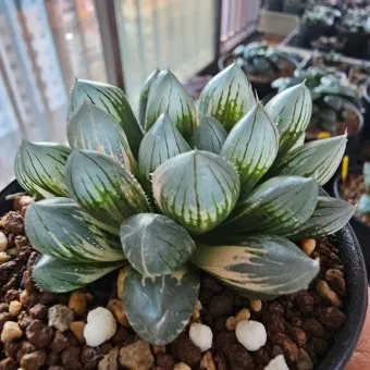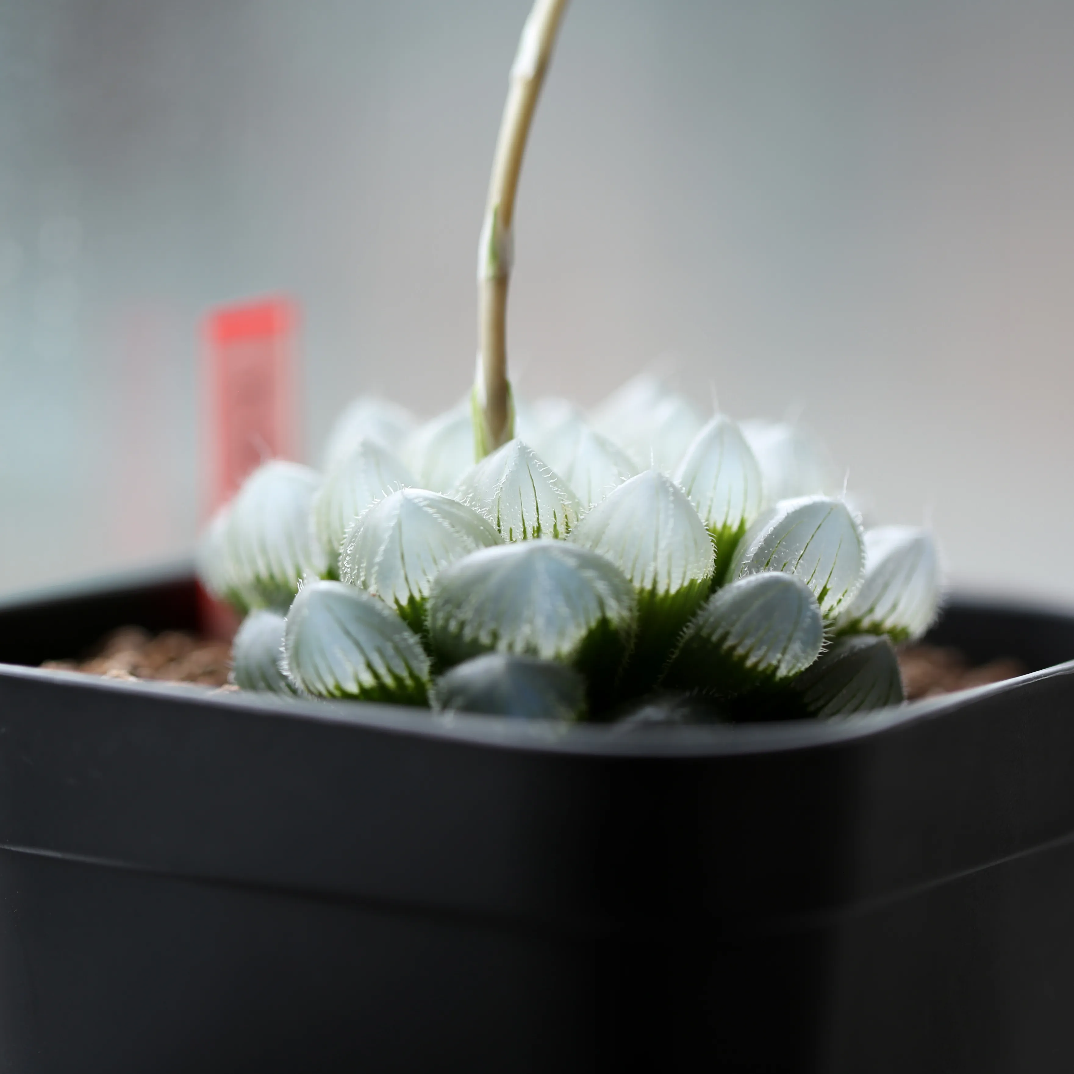 공중 습도는 높게 유지하는 것이 좋아요. 적절한 습도는 하월시아의 투명한 창을 통통하게 유지시켜 줍니다. 과습은 절대 금물이지만, 완전히 건조한 상태도 성장을 멈추게 하니까 적절한 균형이 중요해요!