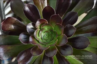 흑법사(Aeonium arboreum 'Atropurpureum')는 카나리아 제도가 원산지인 베란케리속 다육식물이에요. 일반적인 다육식물과 달리 겨울 성장형이라는 특징이 있습니다.