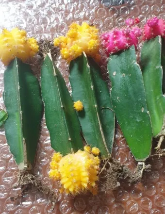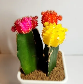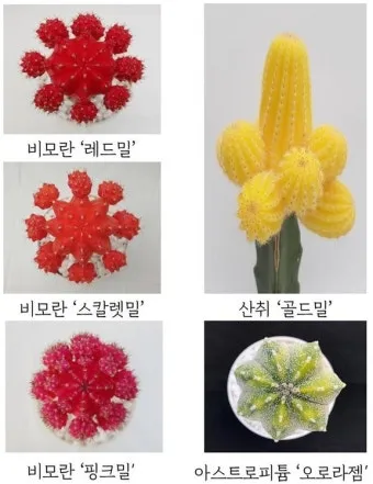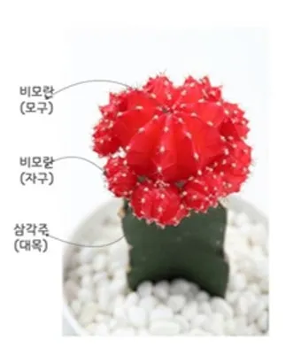 비모란 선인장의 특별한 비밀: 비모란은 엽록소가 거의 없어서 광합성을 제대로 할 수 없습니다. 그래서 반드시 삼각주라는 녹색 선인장에 접목해서 키워야 해요. 마치 기생충처럼 대목에서 영양분을 공급받아 살아가는 거죠.