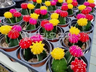비모란 선인장은 우리가 흔히 보는 그 화려한 색깔의 선인장이에요. 정확한 이름은 Gymnocalycium mihanovichii var. friedrichii인데, 파라과이가 원산지인 목단옥에서 변종을 발견해서 만들어진 인위적인 품종입니다.