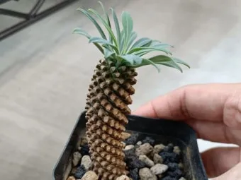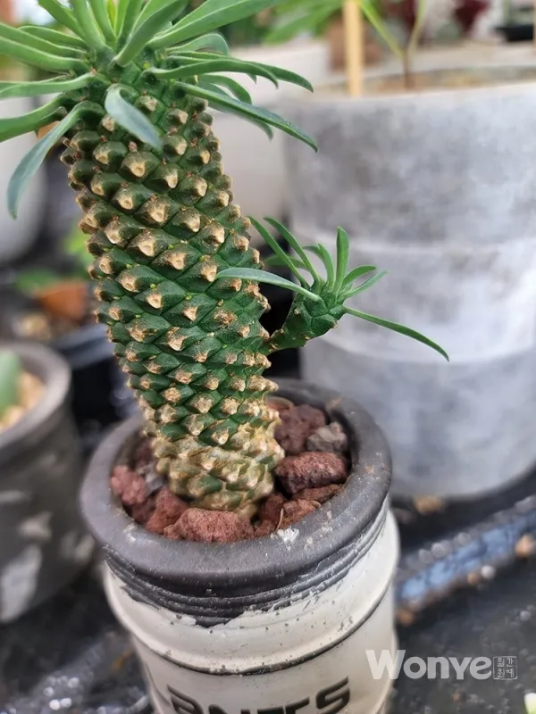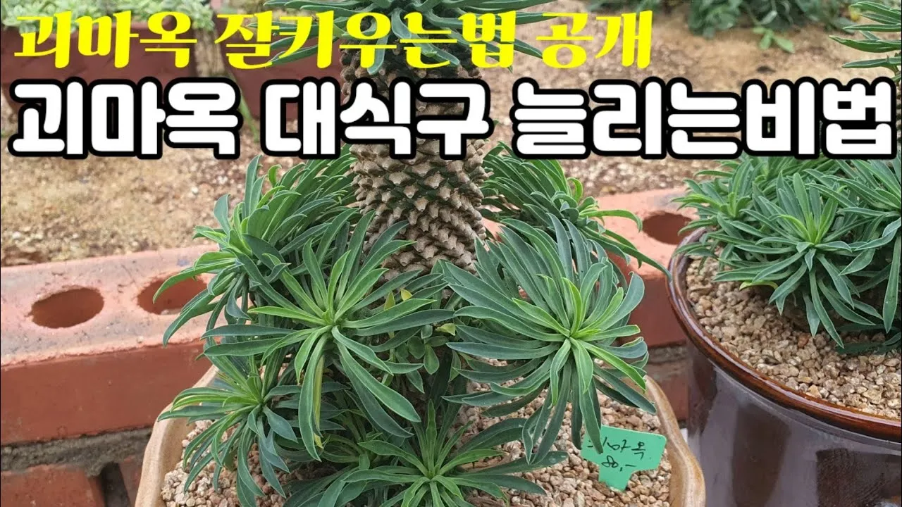 사실 괴마옥은 자연에서 발견된 종이 아니라 철갑환(Euphorbia Bupleurifolia)과 아미산(Euphorbia hybrid Gazan)을 일본에서 인공 교배해서 만든 개량종이에요. 그래서 시중에 유통되는 개체마다 조금씩 생김새가 다를 수 있어요.