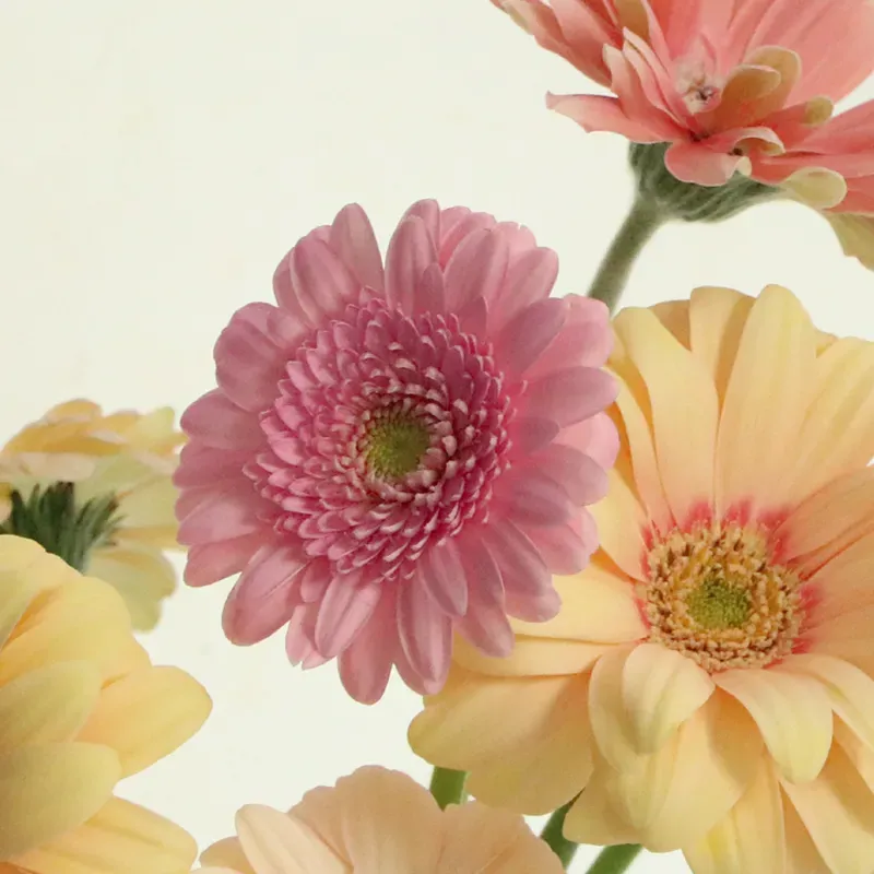 최근에는 대형 화환용 거베라 소비가 줄어들고 있는 대신, 꽃꽂이용이나 가정용 소비가 늘어나고 있어요. 특히 미니 거베라나 스파이더형, 파스타형 같은 다양한 화형의 거베라들이 인기를 끌고 있죠.