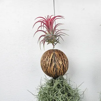 착생 기법: 코르크나 유목에 틸란드시아를 착생시키면 더욱 자연스러운 모습을 연출할 수 있어요. 뿌리가 있는 개체라면 약간의 수태를 사용해서 고정시켜주세요.